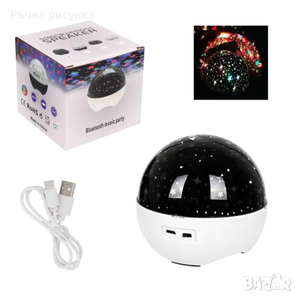 9 и 10 и 11 снимка-Нощна лампа - проектор на звездното небе с Bluetooth говорител/с USB кабел/.