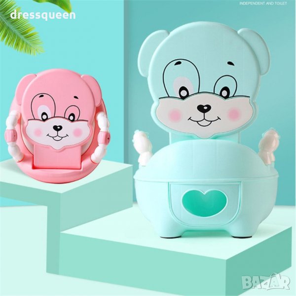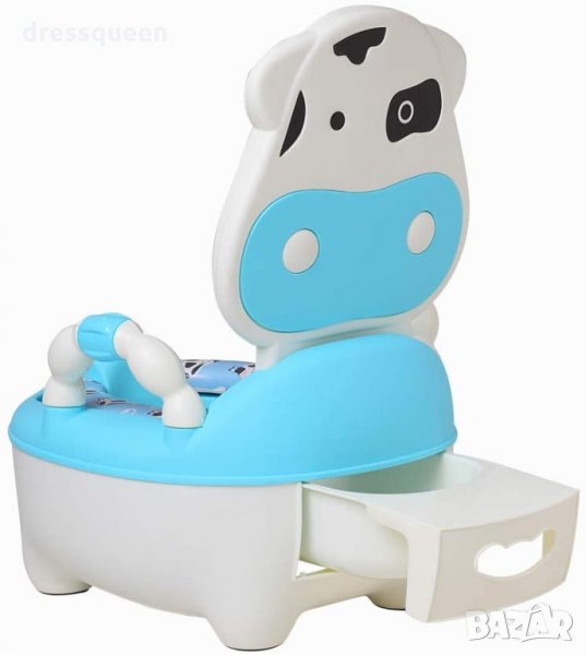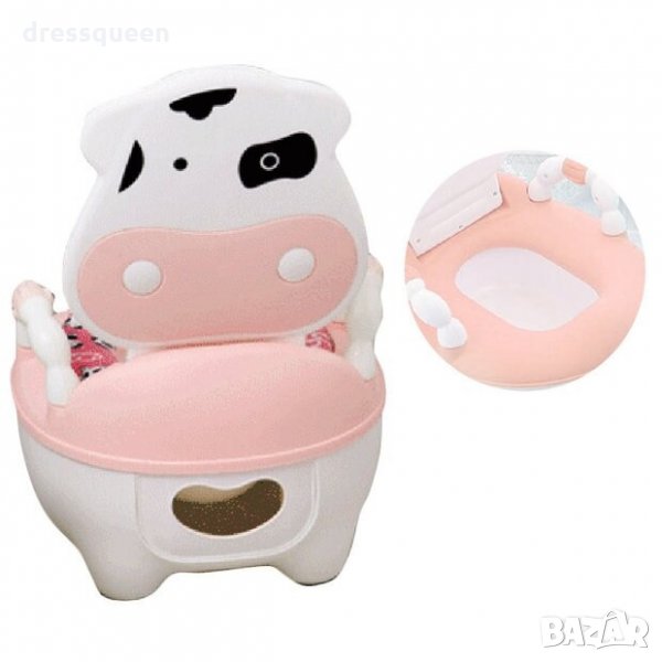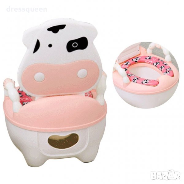 Продуктът е с формата на тоалетна чиния; капаче, което се вдига и сваля; вътрешно изваждащо се контейнерче за лесно почистване; дръжки от двете страни на седалката на гърнето, които осигуряват допълнителна сигурност и комфорт на детето. Специално направено с дизайн с Кученце и Кравичка, за да привлича детското внимание, улеснявайки процеса на приучване към използването на гърнето. То е изработено от висококачествена и лесно почистваща се материя.