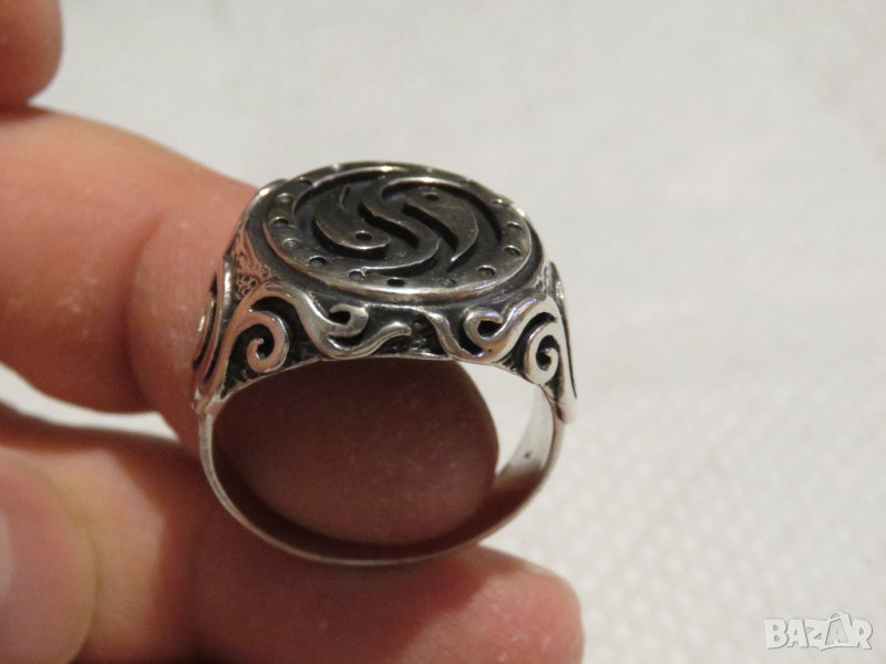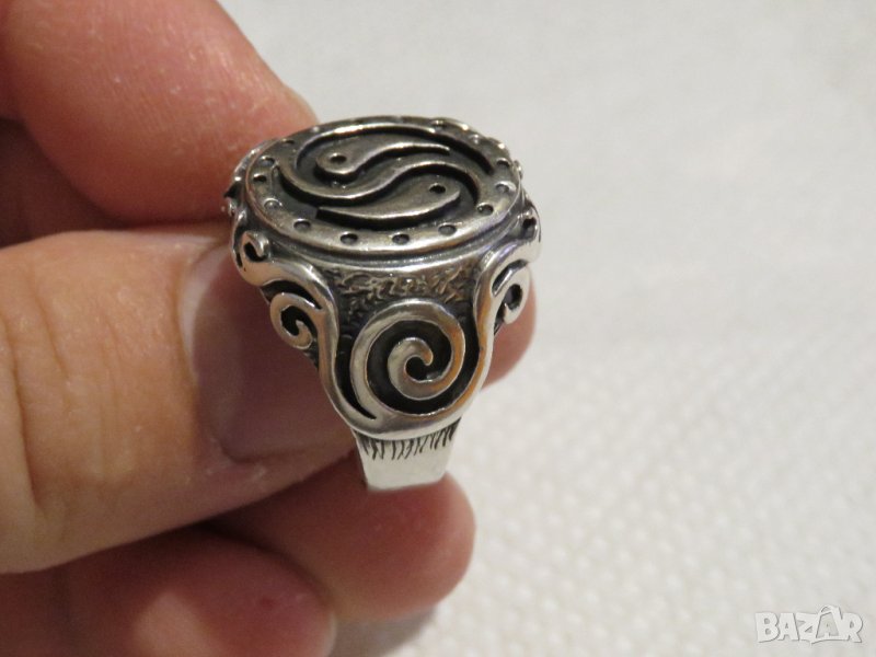 Стар сребърен пръстен с красиви орнаменти и символа Ин и Ян и - притежавайте перфектния баланс - уникален модел - стар внос от Щатите.