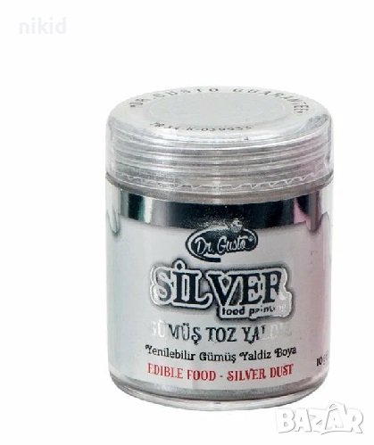 Dr. Gusto прахов оцветител боя на прах сребро злато сладкарска за торти украса ядивна дъст gold → Обява 30280452