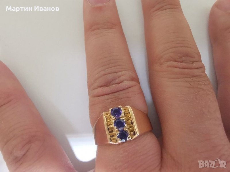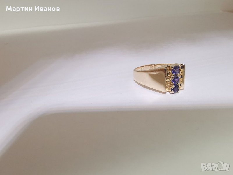Златен пръстен с лилав аметист → Обява 30283686