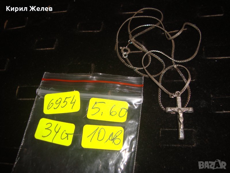 СРЕБРИСТО или СРЕБЪРНО СИНДЖИРЧЕ с КРЪСТЧЕ ПОСРЕБРЕНО или СРЕБЪРНО 6954