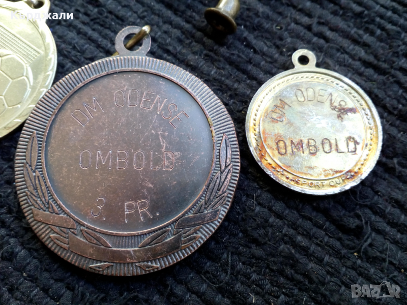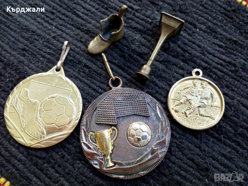 Пет броя Футболни отличия - 3 футболни медала, бутонка и купа.