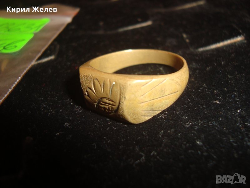 РЕТРО БРОНЗОВ ПРЪСТЕН с ПЕЧАТ за ЗЛАТО 585 14К СТАРО ДУБЛЕ ДАМСКИ ОРНАМЕНТИРАН 13631