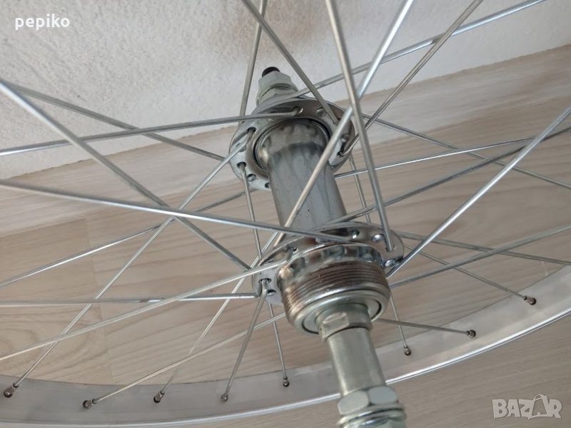 Комплект НОВИ алуминиеви капли 20 цола,алуминиеви стандартни шини 20 цола с 28 спици,никелирани главини,никелирани спици,задна главина на резба за 5-6-7-8 венеца,за вибрейк спирачки.