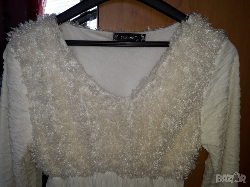 Блуза туника бяла с пухкаво деколте размер Л-ХЛ, снимка 1 - Блузи с дълъг ръкав и пуловери - 30293280 Блуза туника бяла с пухкаво деколте размер Л-ХЛ, снимка 2 - Блузи с дълъг ръкав и пуловери - 30293280 Блуза туника бяла с пухкаво деколте размер Л-ХЛ, снимка 3 - Блузи с дълъг ръкав и пуловери - 30293280 1/3