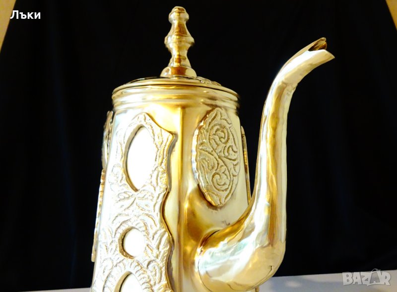 трапеза.Златен бронз с многостенен профил,красиви апликации релефно отляти с множество орнаменти,масивна дръжка за тежко червено вино и капаче,като царска корона.Запазена до днес,блести с божествено великолепие за да краси и радва