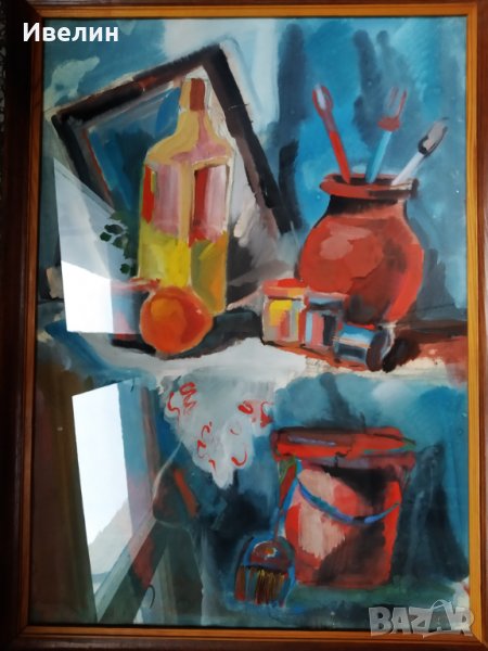 картина-натюрморт.гваш на картон в дървена рамка със стъкло с размери 73см/55см.