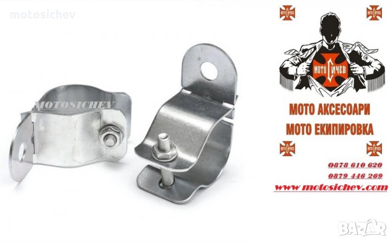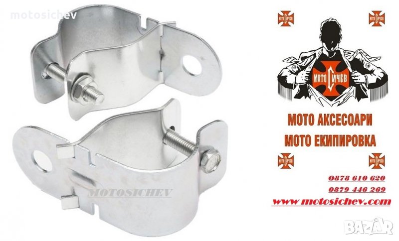 КОМПЛЕКТ 2бр. МОТОЦИКЛЕТНИ МЕТАЛНИ СКОБИ ЗА ФАРОВЕ,МИГАЧИ, ХАЛОГЕНИ ЗА ТРЪБИ С ДИАМЕТЪР ОТ 35-50мм.