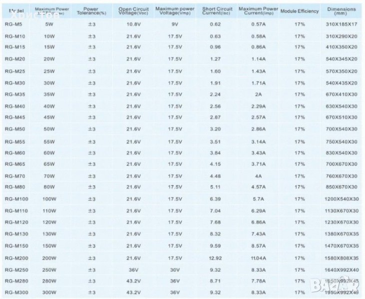 Мощност 265 вата - 1640х992х40 - 210€ лв.