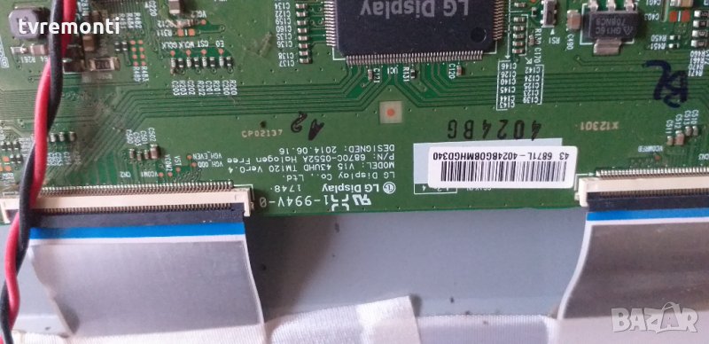 T-Con Board 6870C-0552A 6871L-4024B Борда е гарантирано работещ Демонтиран от уред PHILIPS модел 43PUS6262/12 43PUS6412/12, със счупен дисплей TPT430U3-EQYSHN.G REV.S1V/TPT430U3-EQYSHN.G REV.S1AU тествана от нащия техник