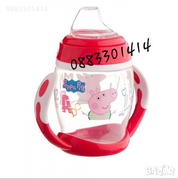 Детска и бебешка чаша Пепа Пиг с дизайн, който улеснява държането и пиенето, както за майката, така и за детето. Благодарение на уникално оформения накрайник от мек силикон, пиенето от бутилката е изключително лесно.