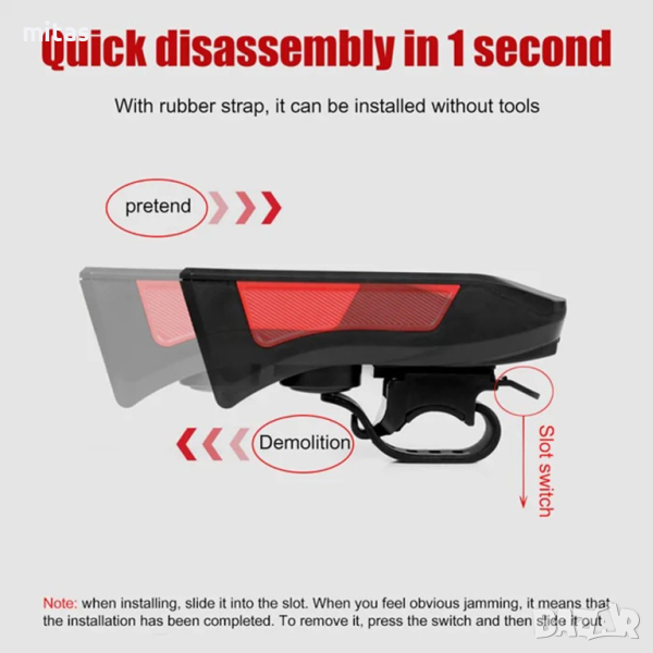 - Включен пакет: 1 x предна светлина за велосипед с клаксон; 1 x кабел за зареждане; 1 х силиконова каишка