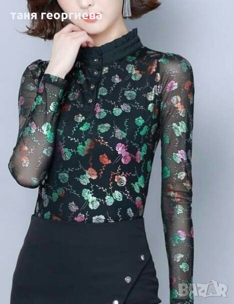 Уникална нежна нова маркова дамска блуза-ризка с яка и копчета леко сатенирана и с прозрачни ръкави Прекрасни преливащи се цветове актуални за сезона