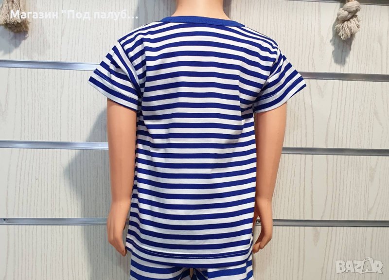 Страхотна нова детска класическа моряшка тениска на синьо и бяло райе с къс ръкав и трансферен печат Пират, произведена в България под марката PRINTEX, изработена от висококачествен 100% пениран памук с обло деколте. Подходяща за носене както в горещите летни дни навън, така и вкъщи пред телевизора. Материята не позволява да се измачка, което я прави изключително ценена и желана от нашите дългогодишни клиенти. Тениската може да се пере при температура до 40 градуса. Спокойно можем да гарантираме за качеството на изработката и ярките цветове на дизайна.