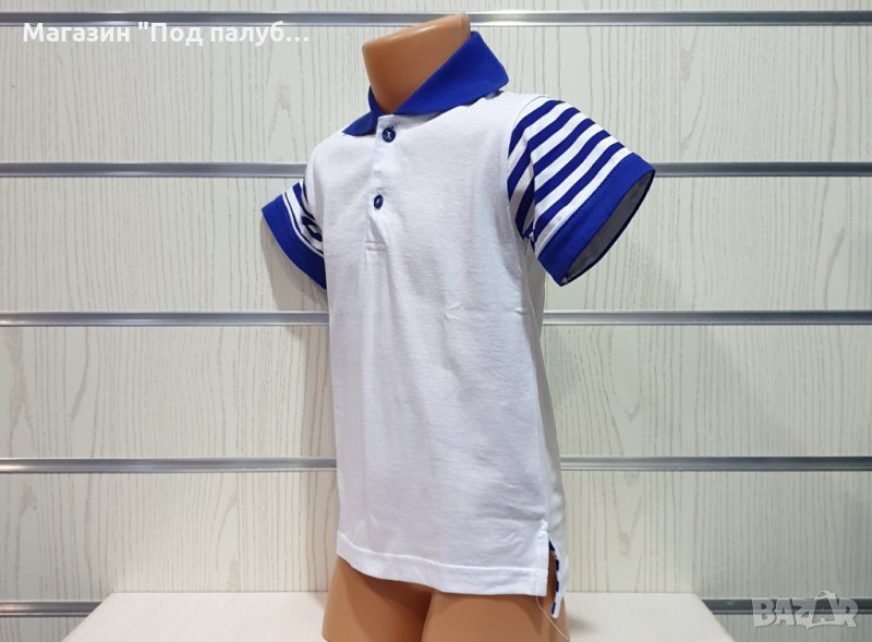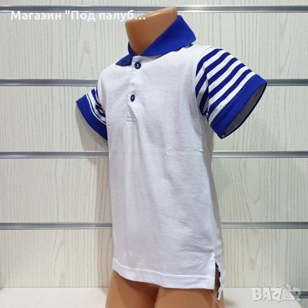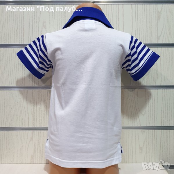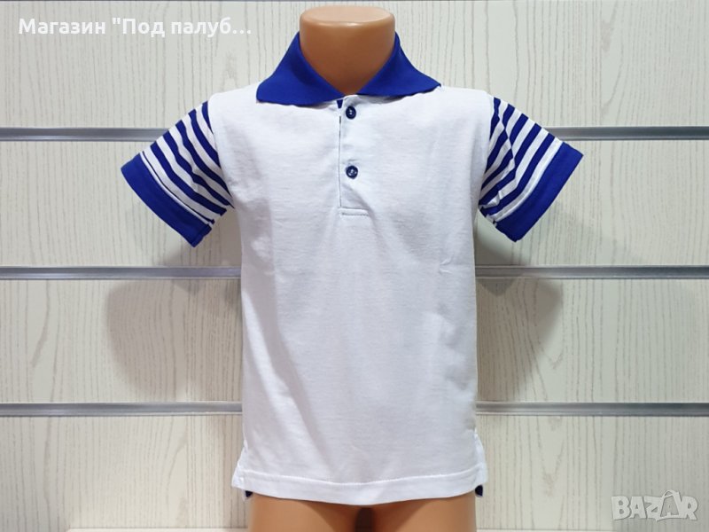 Страхотна нова бяла детска елегантна блузка с яка, деколте с 2 копчета и къси ръкави на класическо синьо и бяло райе. Произведена в България под марката PRINTEX от 100% висококачествен памучен плат, което я прави идеална за горещите летни дни, както и за ежедневно носене от вашето дете. Блузката може перфектно да се комбинира с всякакъв вид панталон, дънки или спортни къси панталони.