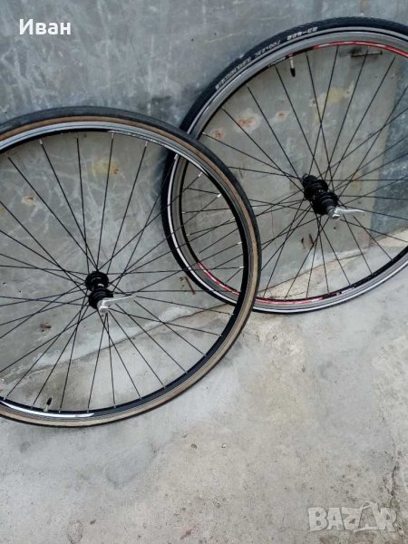 шосейни капли - комплект с главини Deore L X, каплите се продават без гумите, гумите са сложени за да не се пробиват бордовете на шините. На едната на комплекта е 220лв.