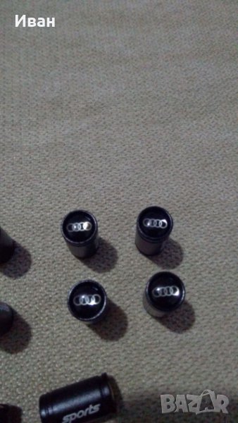 Продавам луксозни качественни черни кръгли метални капачки за вентили с емблемите на Audi ,S line , BMW M и други .