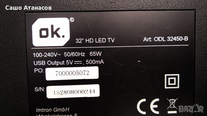 Модули от телевизор ok. ODL32450-B с дефектна матрица (панел SM315CTDA19 D0308 )