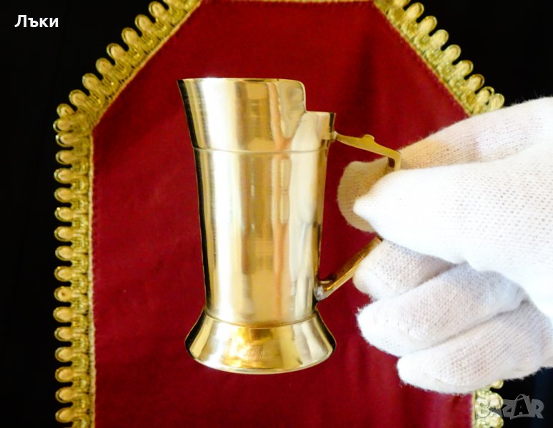 изработена,гладка и блестяща.Подходяща за ракия,мляко,сметана. Височина 8 см.,диаметър