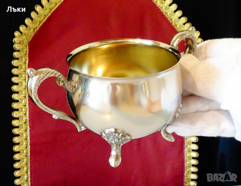 посрбрена с висока проба сребро,родирана за блясък и трайност.От вътре е