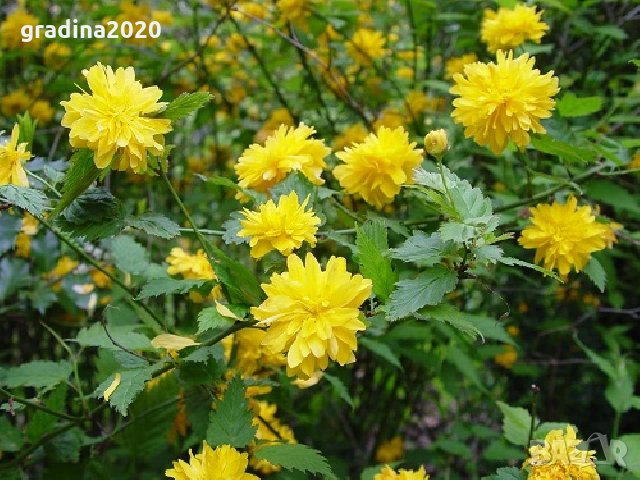 Керията е листопаден храст, който на височина достига 1,5 - 3 м. Листата са разположени последователно на зелените клони. Имат яйцевидно удължена на форма. Те са назъбени покрая и върху тях като златистожълти фенерчета са нацъфтелите в жълто рози.