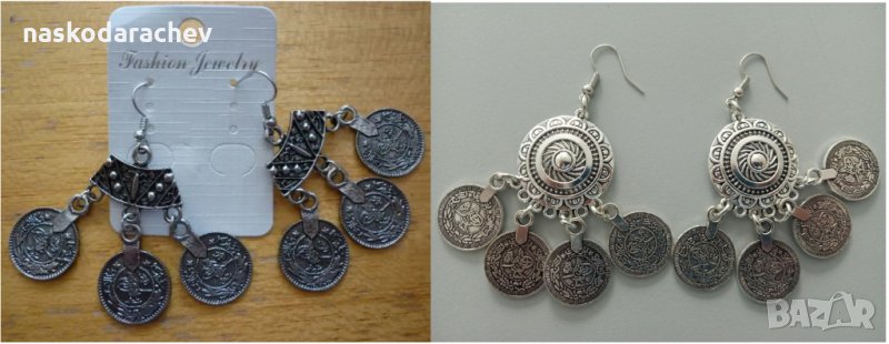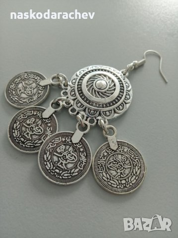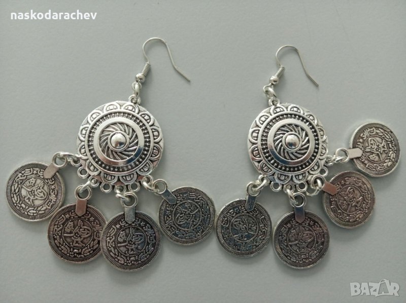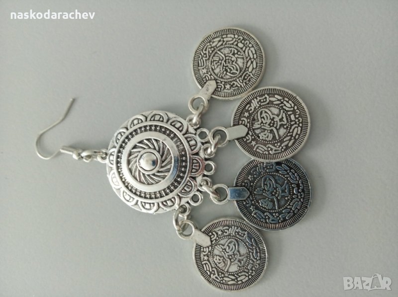 Етно обеци с пендари, сребро имитация, цена - 20 лв.