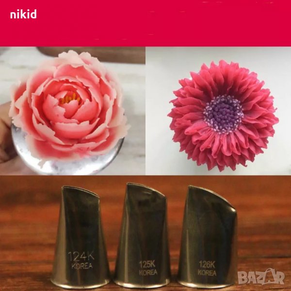 3 бр 124к 125к 126к сплескани тесни накрайници накрайник роза Хризантема за пош крем украса торта → Обява 30343380
