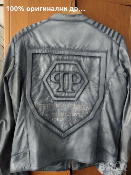 Мъжко кожено яке Philipp Plein естествена агнешка кожа 100% оригинално за разлика от повечето реплики тук якето е лимитирана серия може да сте сигурни че няма да видите друг с подобно яке размера е М аз нося между М и Л почти няма никакви видими забележки малко съм го носил якето е за ценители на марката цената му е съобразена защото е носено малко но е смешна за този модел.