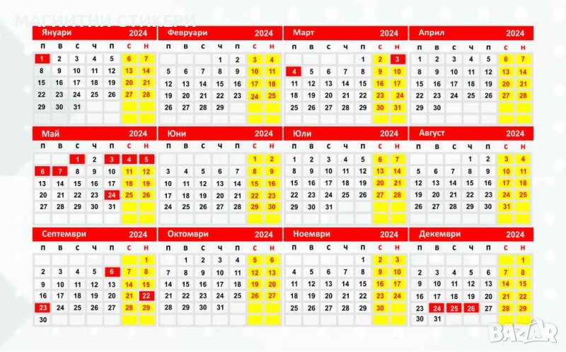 Визитка календарче за 2024 година двустранни 1000 броя 80 лева с размер 52х84 и 2000 броя с размер 52х42 за 90 лева