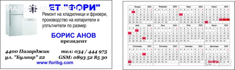 Визитки двустранни с календарче за 2024 г. 1000 за 60 лева → Обява 30347254