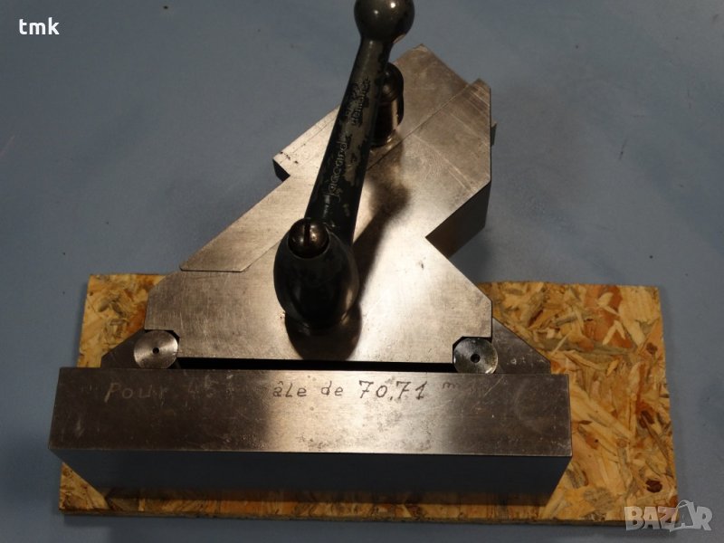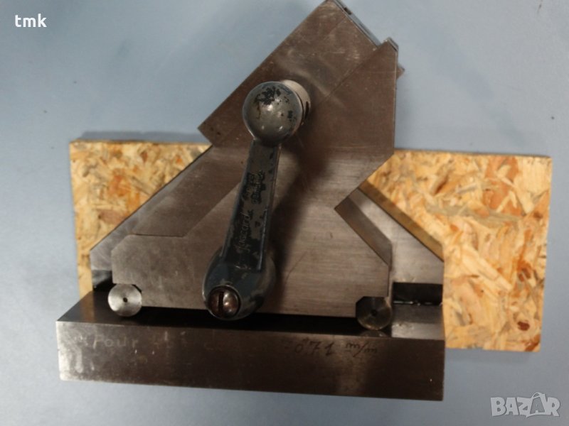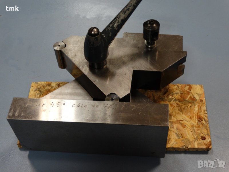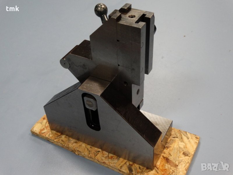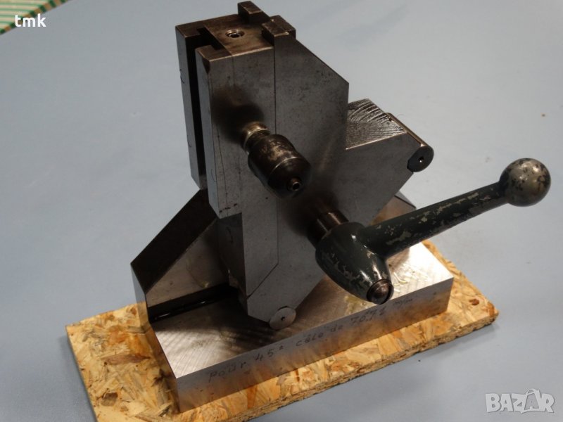 Фирма "Техно Маш Комплект" ЕООД предлага употребявана, в отлично състояние и със запазени технически параметри, швейцарска синусна стойка с позициониране на 45° и следните размери: