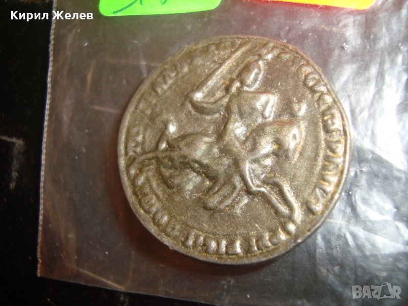 РЯДКА СТАРА МАСИВНА БРОНЗОВА ЗНАЧКА КОННИК ВОИН НАДПИС 11971
