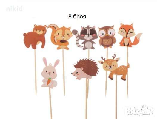 8 бр Горски Животни сет картонени топери украса декор за торта мъфини кексчета парти → Обява 30354741