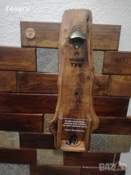 Уникална стенна отварачка за бира! Изработени от орех и череша. С възможност за гравиране или директен печат!