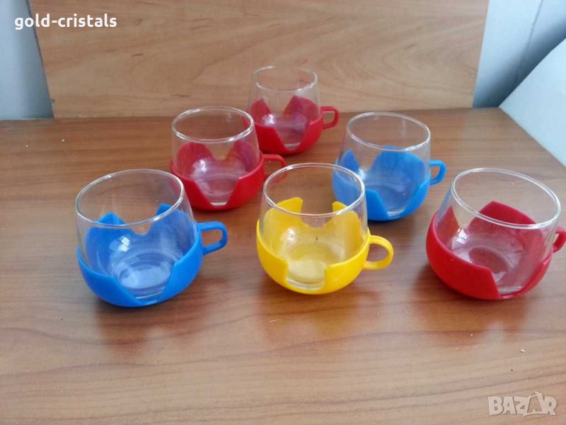 немски стъклени чаши за чай и кафе Цветни стакани подстакани пласмаса и стъклени чаши за чай кафе сок вода и др немко старо производство термо чаши закалено стъкло огнеупорно стъкло йена глас сервиз комплект сет лот ретро арт декор винтидж колекция стари старинни антикварни предмети обзавеждане за дома и семейството подходящи за подарък за ценители и колекционери