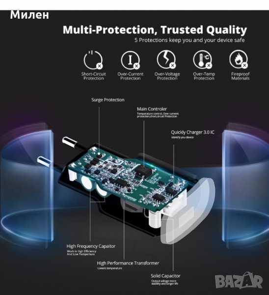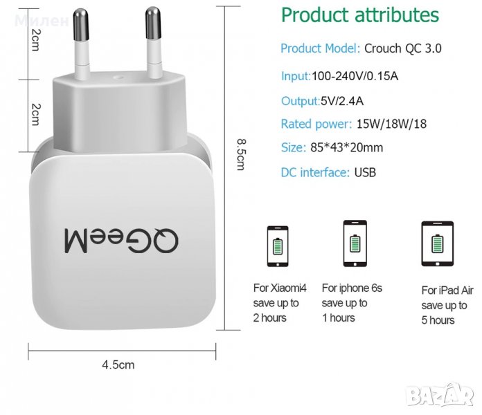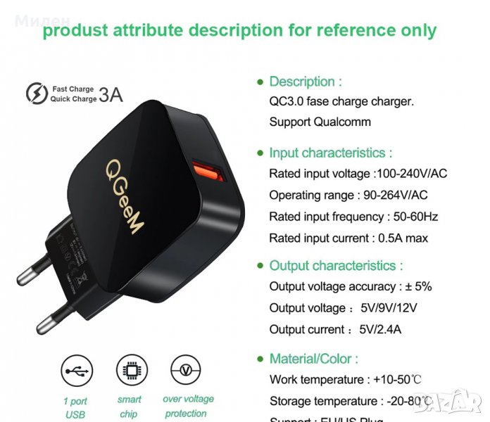 2. QGEEM 18W USB зарядно Бързо зареждане 3.0 - черно - 8лв.