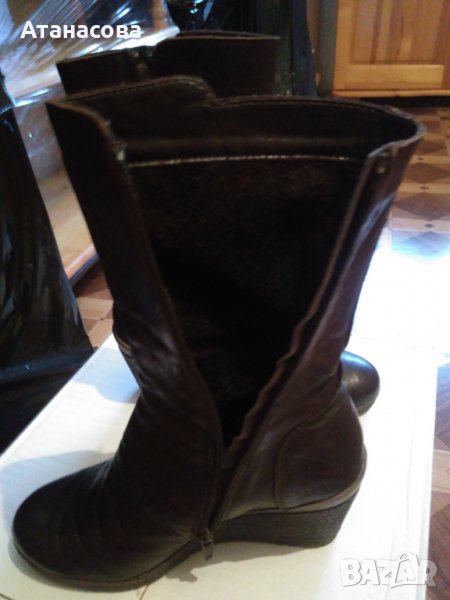 Дамски ботуши / боти от естествена кожа . От вътре имат топла подплата . С полиуретанова подметка 36 номер . Много малко са носени .