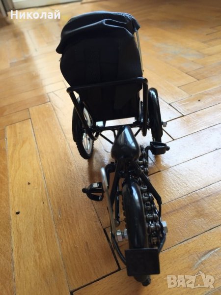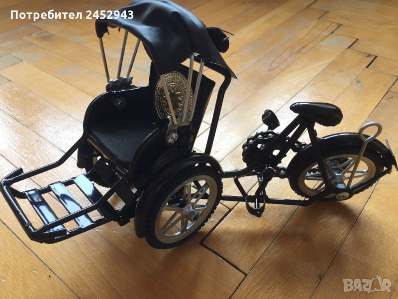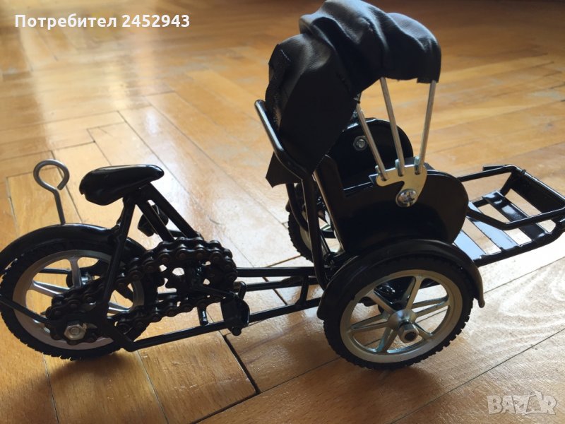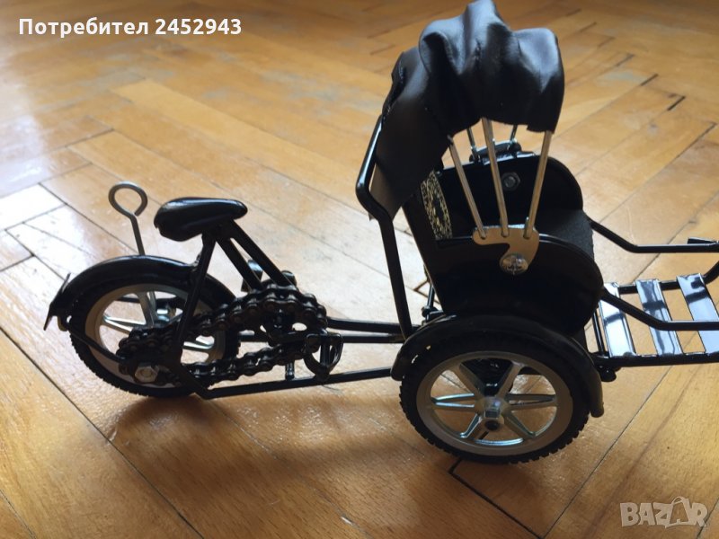 Ръчно изработена виетнамска рикша. Педалите се въртят чрез веригата и може да завива. Много добра изработка. Дължина 23 см, височина 14 см. Купувана е от Виетнам през 2018г. Прекрасна за подарък и декорация.
