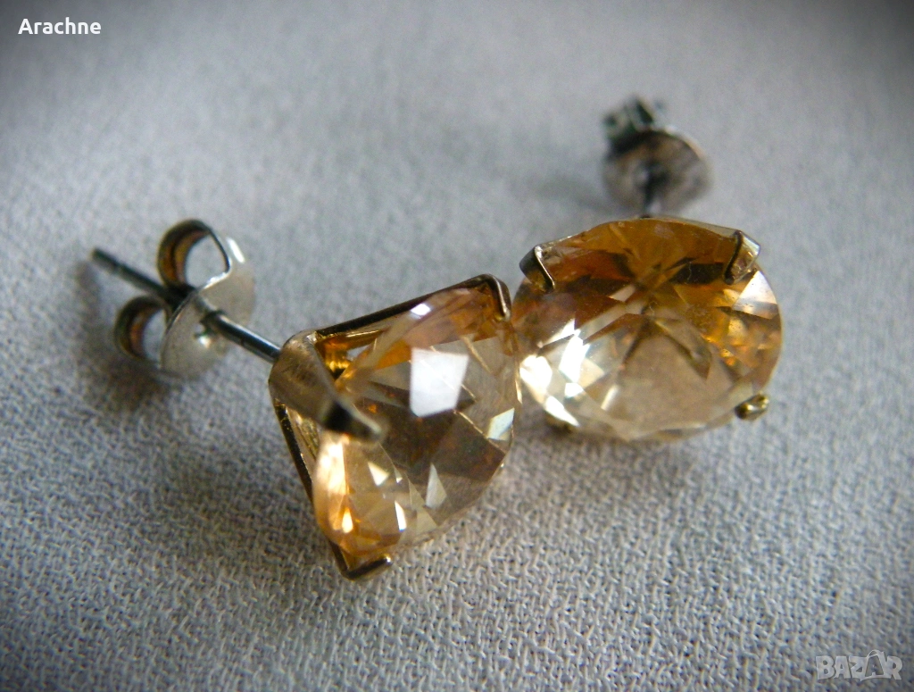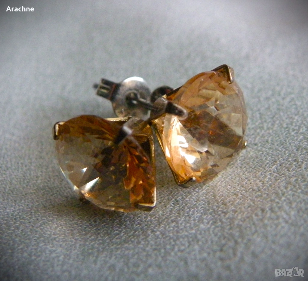 Обици с големи цитрини, сребро и позлата → Обява 30372113