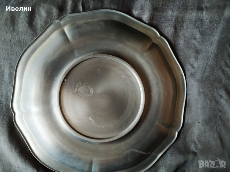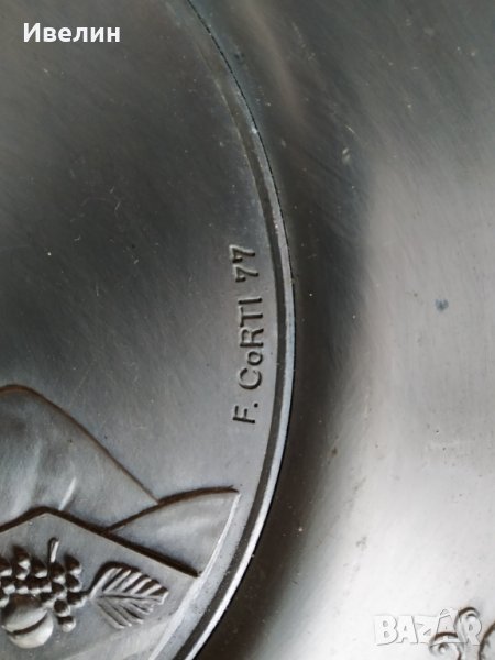 винтиж чиния за декорация от цинк.диаметър 31см,подписана.рядка.