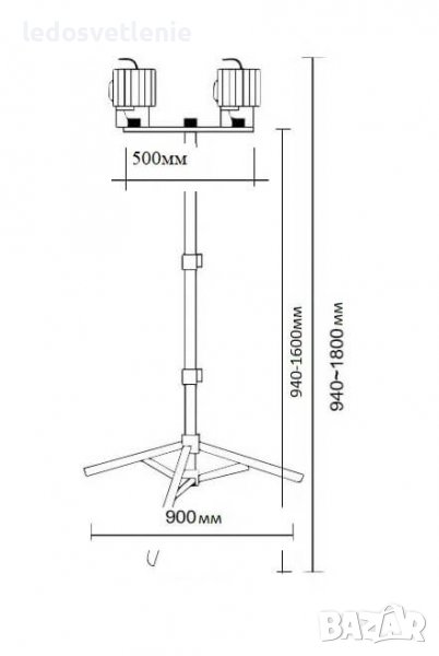 Височина – регулируема, между 940-1600мм без прожекторите върху стойката.