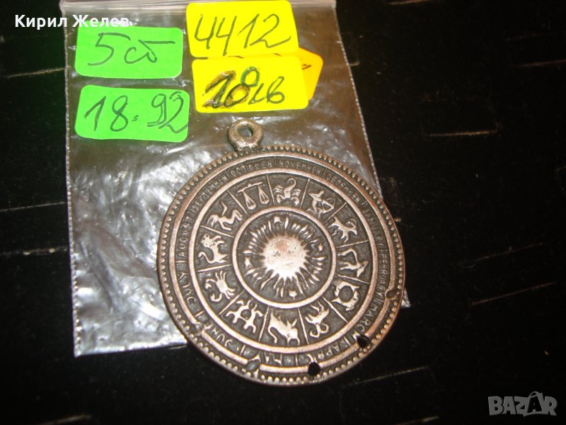 СТАРИНЕН ЗОДИАК ЗОДИАКАЛЕН ПОСРЕБРЕН БРОНЗОВ МЕДАЛЬОН ЗОДИИ РЯДЪК АМУЛЕТ 4412