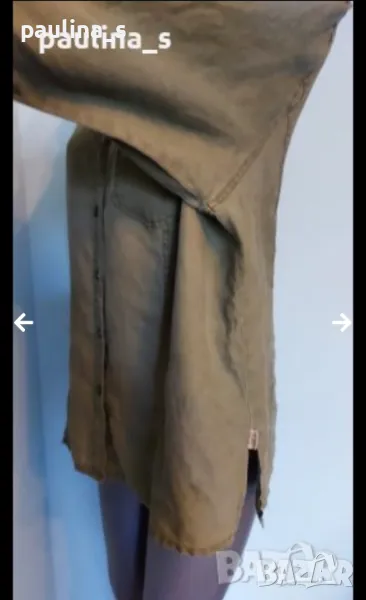 Ленена брандова риза в цвят Милитъри зелено. Моделът е втален с цепки в страничната част. Копчета са от естествен седеф. Прекрасна, като всичко на бранда.