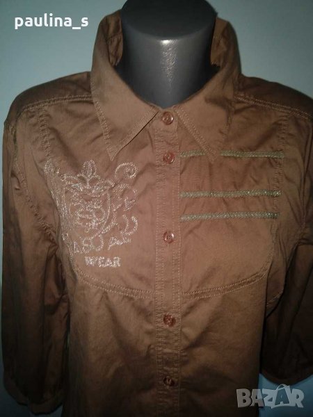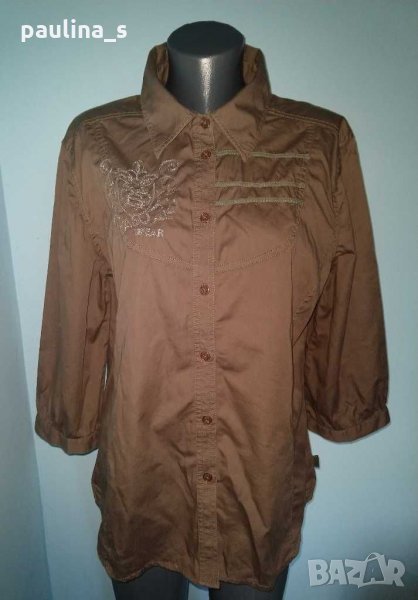 1️⃣. XL / 2XL "Cecil" - цена 19,99лв. Кафява, декорирана памучна риза в спортно - елегантен стил. Материята е плътен памук и няма еластичност. Декорациите са от бродерии и рюшове. Моделът се вижда добре. Нова, без дефекти и етикет.