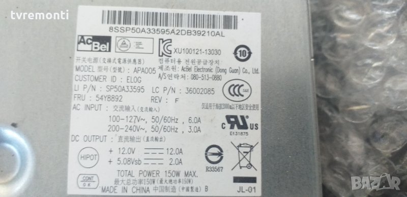 Power Supply XU100121-13030 XU100121-13030 | Lenovo 150-Watts Power Supply for ThinkCentre борда е гарантирано работещ Демонтиран от уред със счупен дисплей