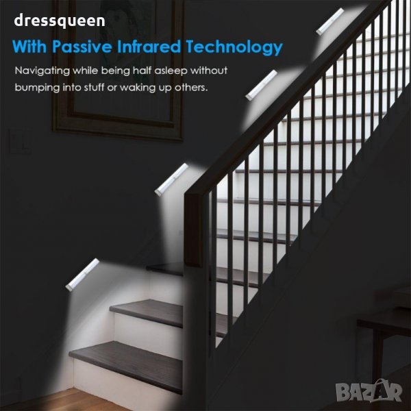Тази осветителна система пази сама батериите си от изтощаване. Тя има вграден сензор за движение, благодарение на който осветената стая ще Ви чака 3 метра преди да влезете в нея. Изключва се самичка, когато вече нямате нужда от нея, а Вас лишава от излишно натоварване със спирането ѝ. Не се налага да опъвате кабелчета, за да я ползвате. Просто трябва да сложите двойната лепенка, която ще намерите в кутията, и вече сте готови за употреба. Благодарение на елементарния монтаж и демонтаж, можете да се наслаждавате на светлина където пожелаете. Това я прави подходяща за спешни случай, тъй като винаги можете да я вземете с Вас, а после без усилия да я върнете на мястото ѝ.