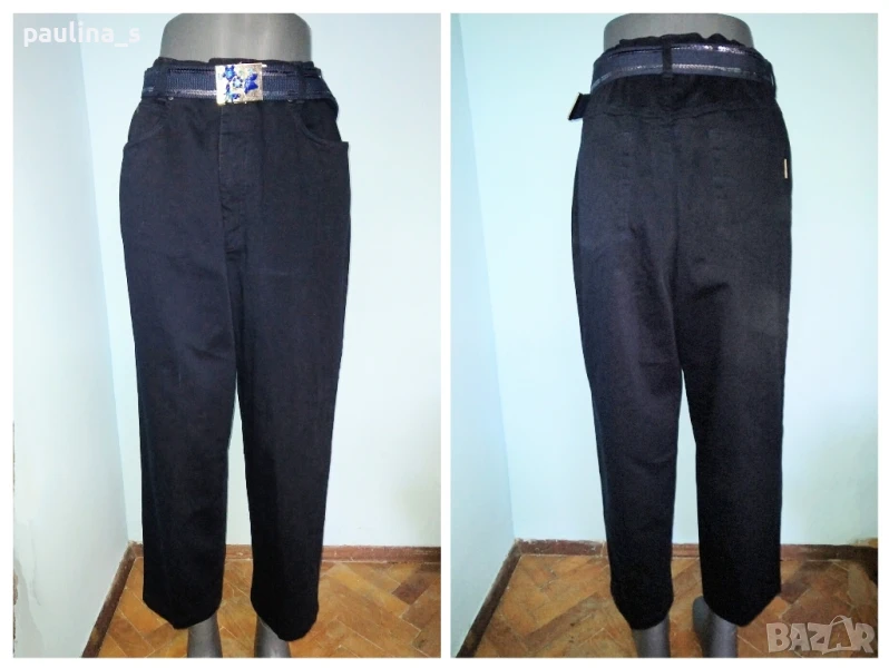 2️⃣. Колаж / XL / 3XL - "Authentic". Цената е крайна 29,99лв. Еластични дънки с висока талия, голям размер 46EU. Моделът е "5 pocket Denim" standard, платът е много еластичен и плътен, покрива няколко размера. Цветът е тъмно син, navy blue. Нови, без дефекти и етикет. Коланът е примерен, продава се отделно, токата е с камъни и ръчно рисуван емайл, декорациите са от пайети - цена 19лв.