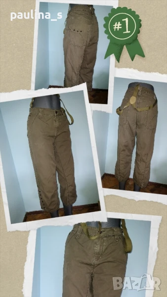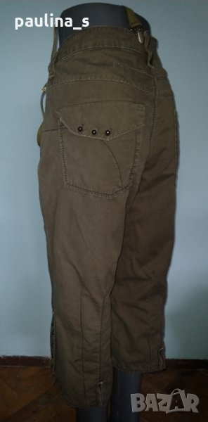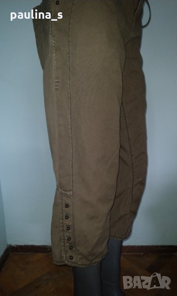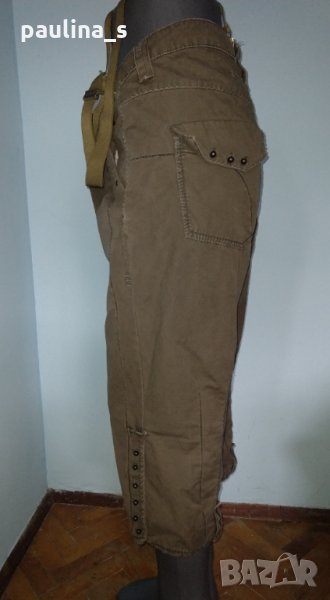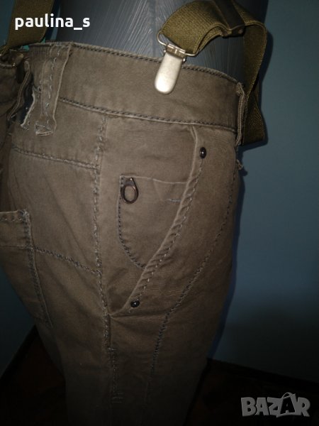 1️⃣ . L / 2XL "Bison". Цената е крайна 49,99лв. Дизайнерски дънкови бермуди в неутрален цвят - Шам фастък. Моделът се вижда добре. Тирантите са примерни, продават се отделно - 19лв. Дрехата е е абсолютен оригинал, купена в чужбина, с идентификационен номер. Емблемата на бранда е от естествена кожа с косъм.