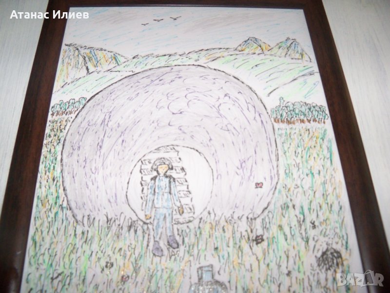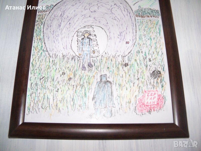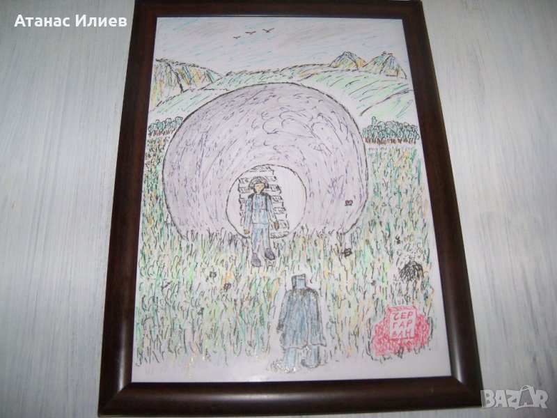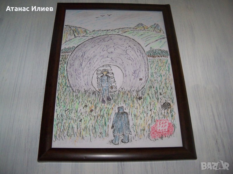 Оригинална рамкирана илюстрация към разказа "Пандемия 2222". Илюстрацията е изпълнена с тънкописци на формат А4 и рамкирана в рамка с размери 24х32 см. Заедно с картината получавате и разказа принтиран заедно с двете илюстрации към него. Автор на илюстрациите и на разказа е Атанас Илиев с псевдоним Чер Гарван. Повече от неговите разкази можете да прочетете на сайта му "Гарванови истории".